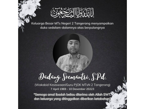 Assalamualaikum Wr.Wb Pendidikan adalah pilar negara yang harus terus dijaga dan dikembangkan. Keduanya akan selalu beriringan dan tidak bisa dipisahkan. Negara akan maju jika Sumber Daya Manusianya (SDM) memiliki kualitas yang bagus untuk mengelola Sumber Daya Alam (SDA) yang ada di negaranya. Kualitas Sumber Daya Manusia yang berkulitas harus dibarengi dengan nilai akhlak yang baik sehingga akan terwujud negara yang Baldatun Thoyibatun Wa Rabbun Ghofur. Berbanggalah untuk orang tua dan peserta didik yang telah memilih madrasah sebagai jalur pendidikannya. Mari bersama-sama untuk mewujudkan Madrasah berprestasi yang berakhlakuk karimah.